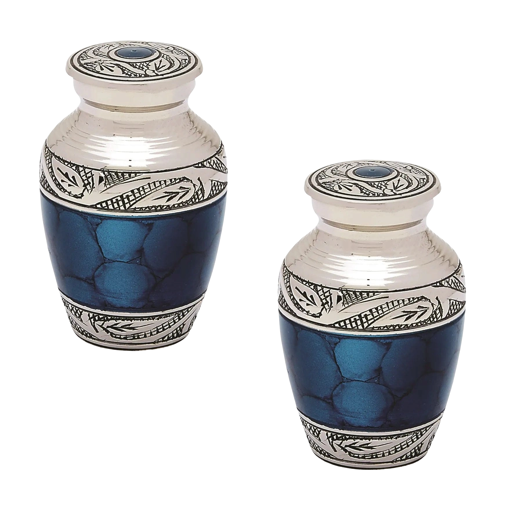 Crafted with meticulous attention to detail, the Blue Keepsake Pet Urn is made of high-quality brass, ensuring durability and longevity. The use of brass lends a sense of timeless elegance to this memorial piece. Choose the Blue Keepsake Pet Urn as a meaningful and beautiful tribute, capturing the essence of the Grecian style in a mystic blue hue with nickel accents. Preserve the memory of your pet with this exquisite keepsake pet urn .